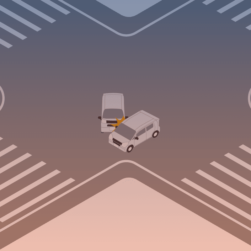 ・イラストに使用している各要素(車、背景、車、天候、信号、衝突地点など)は、代表的なイメージをイラスト化しており、色や形状等含め現実の事故の状況とは異なります。あくまで、事故のイメージとして参考までにご活用ください。