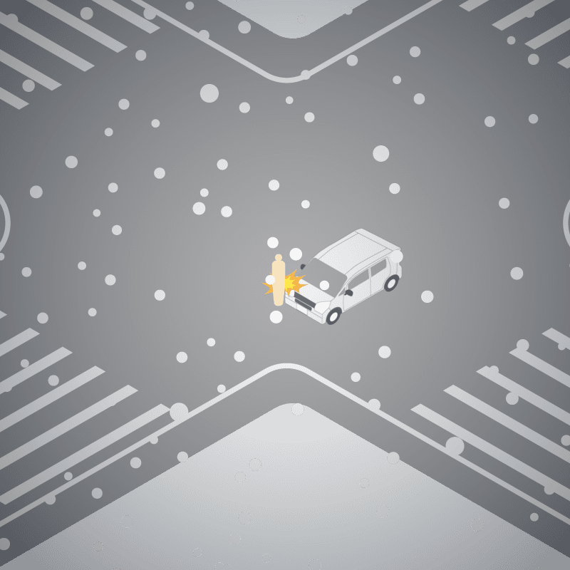 ・イラストに使用している各要素(車、背景、車、天候、信号、衝突地点など)は、代表的なイメージをイラスト化しており、色や形状等含め現実の事故の状況とは異なります。あくまで、事故のイメージとして参考までにご活用ください。