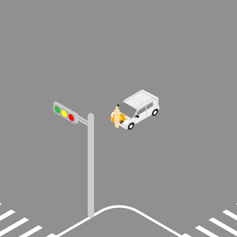 ・イラストに使用している各要素(車、背景、車、天候、信号、衝突地点など)は、代表的なイメージをイラスト化しており、色や形状等含め現実の事故の状況とは異なります。あくまで、事故のイメージとして参考までにご活用ください。
