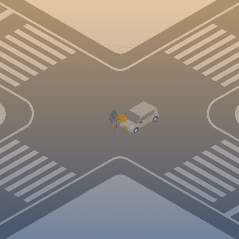 ・イラストに使用している各要素(車、背景、車、天候、信号、衝突地点など)は、代表的なイメージをイラスト化しており、色や形状等含め現実の事故の状況とは異なります。あくまで、事故のイメージとして参考までにご活用ください。