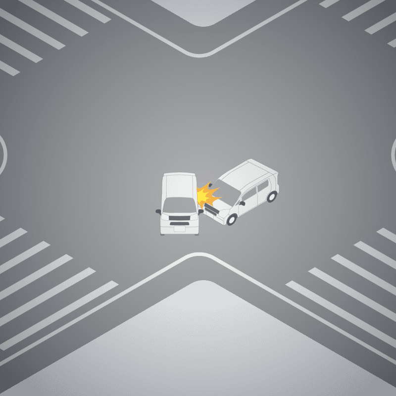 ・イラストに使用している各要素(車、背景、車、天候、信号、衝突地点など)は、代表的なイメージをイラスト化しており、色や形状等含め現実の事故の状況とは異なります。あくまで、事故のイメージとして参考までにご活用ください。