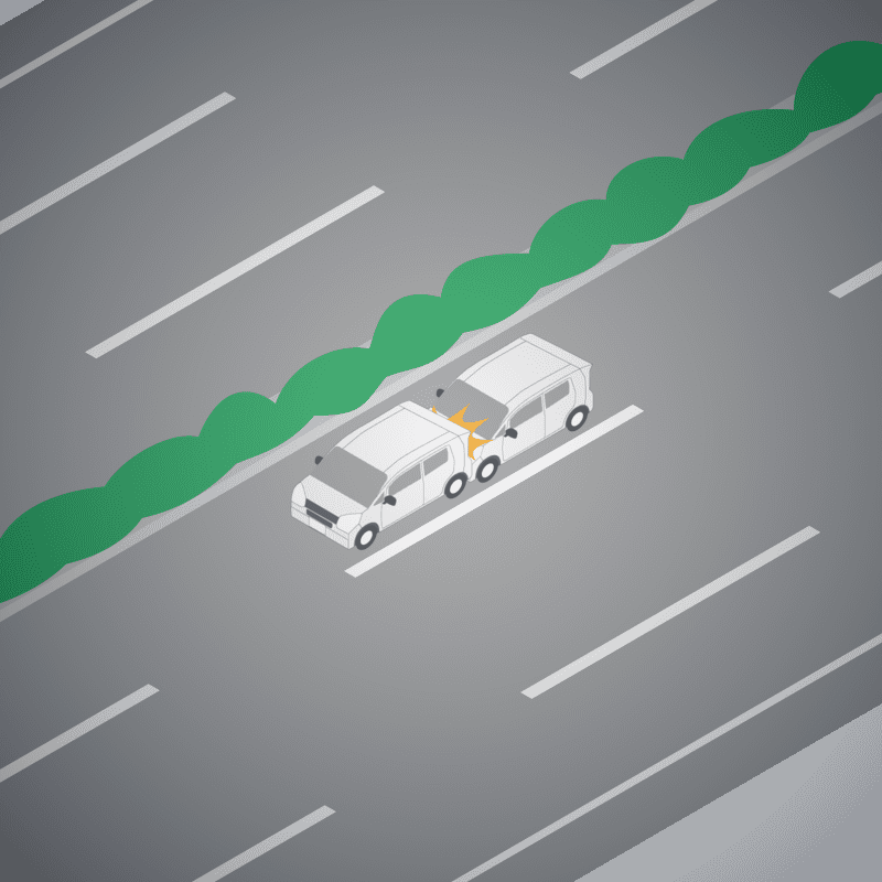 ・イラストに使用している各要素(車、背景、車、天候、信号、衝突地点など)は、代表的なイメージをイラスト化しており、色や形状等含め現実の事故の状況とは異なります。あくまで、事故のイメージとして参考までにご活用ください。