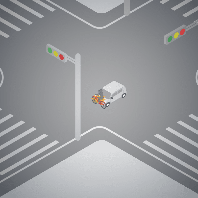 ・イラストに使用している各要素(車、背景、車、天候、信号、衝突地点など)は、代表的なイメージをイラスト化しており、色や形状等含め現実の事故の状況とは異なります。あくまで、事故のイメージとして参考までにご活用ください。