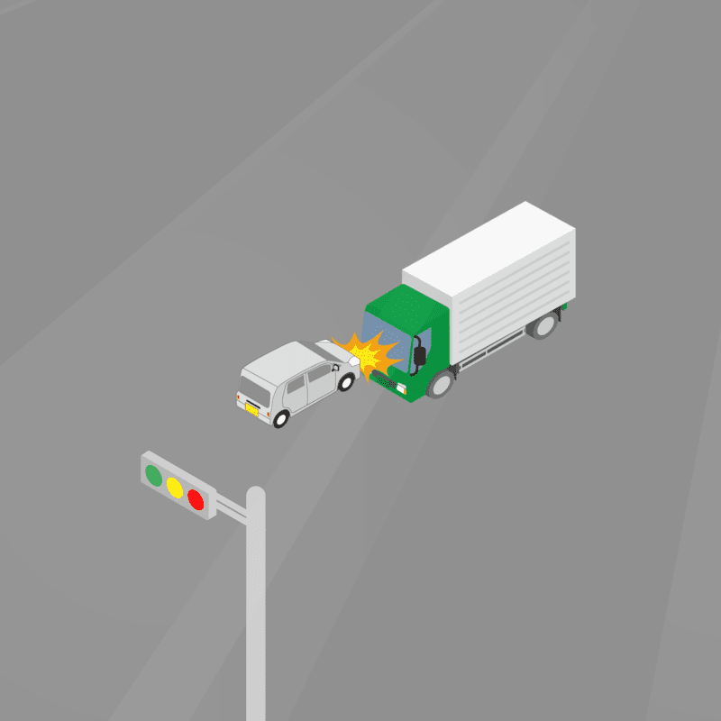 ・イラストに使用している各要素(車、背景、車、天候、信号、衝突地点など)は、代表的なイメージをイラスト化しており、色や形状等含め現実の事故の状況とは異なります。あくまで、事故のイメージとして参考までにご活用ください。