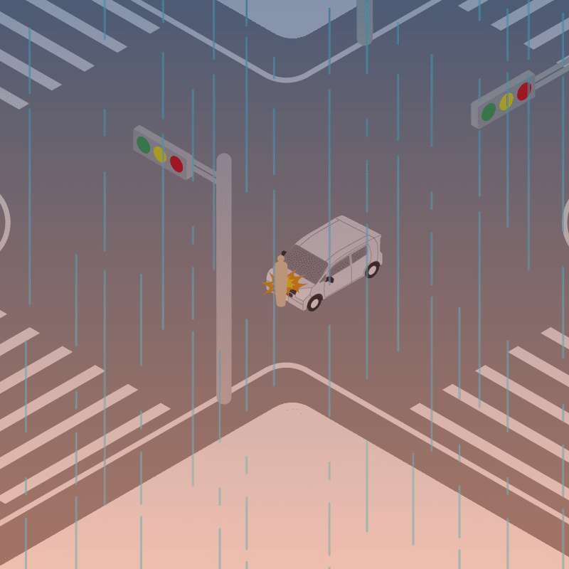・イラストに使用している各要素(車、背景、車、天候、信号、衝突地点など)は、代表的なイメージをイラスト化しており、色や形状等含め現実の事故の状況とは異なります。あくまで、事故のイメージとして参考までにご活用ください。