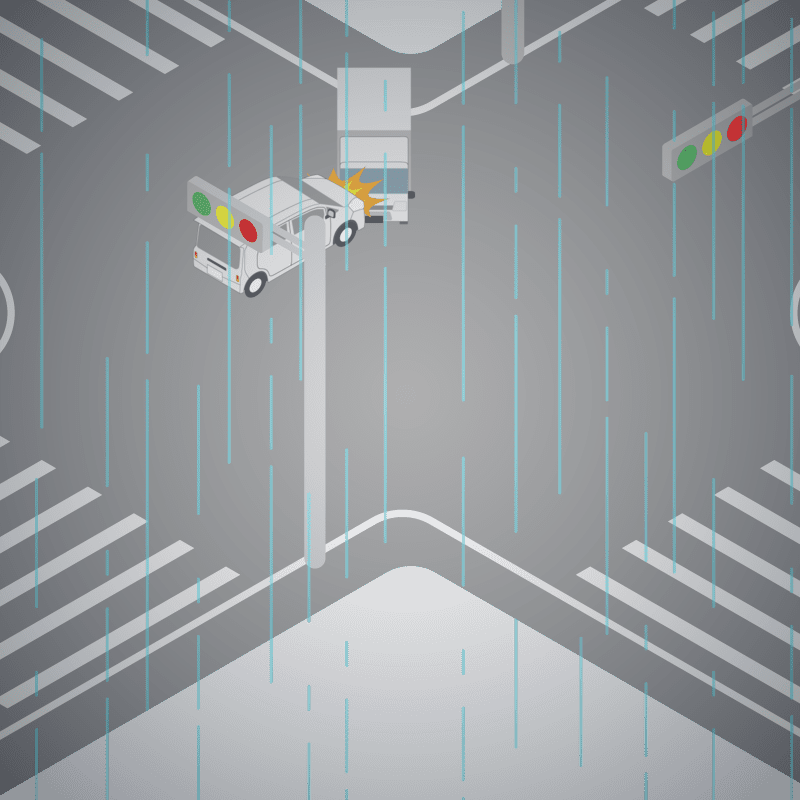 ・イラストに使用している各要素(車、背景、車、天候、信号、衝突地点など)は、代表的なイメージをイラスト化しており、色や形状等含め現実の事故の状況とは異なります。あくまで、事故のイメージとして参考までにご活用ください。