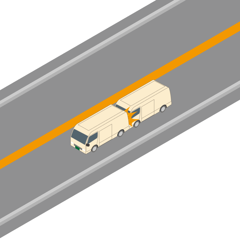 ・イラストに使用している各要素(車、背景、車、天候、信号、衝突地点など)は、代表的なイメージをイラスト化しており、色や形状等含め現実の事故の状況とは異なります。あくまで、事故のイメージとして参考までにご活用ください。