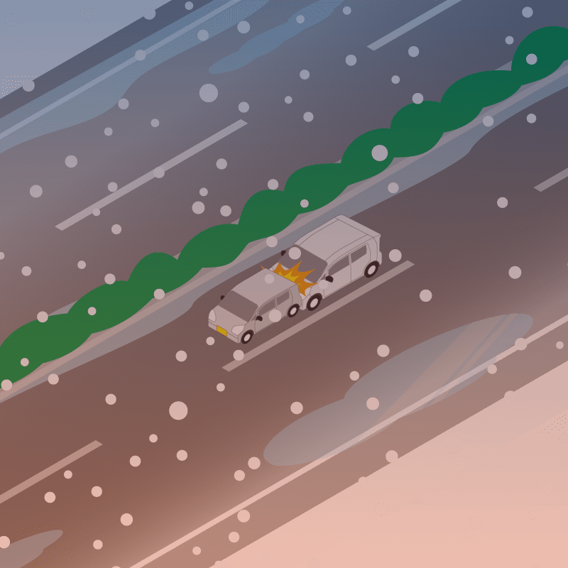 ・イラストに使用している各要素(車、背景、車、天候、信号、衝突地点など)は、代表的なイメージをイラスト化しており、色や形状等含め現実の事故の状況とは異なります。あくまで、事故のイメージとして参考までにご活用ください。