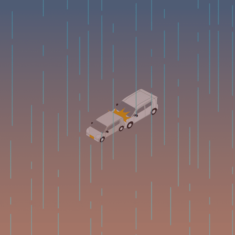・イラストに使用している各要素(車、背景、車、天候、信号、衝突地点など)は、代表的なイメージをイラスト化しており、色や形状等含め現実の事故の状況とは異なります。あくまで、事故のイメージとして参考までにご活用ください。