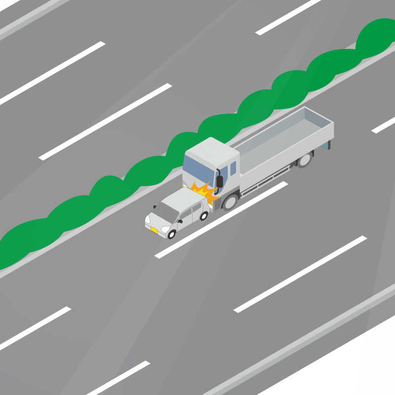 ・イラストに使用している各要素(車、背景、車、天候、信号、衝突地点など)は、代表的なイメージをイラスト化しており、色や形状等含め現実の事故の状況とは異なります。あくまで、事故のイメージとして参考までにご活用ください。