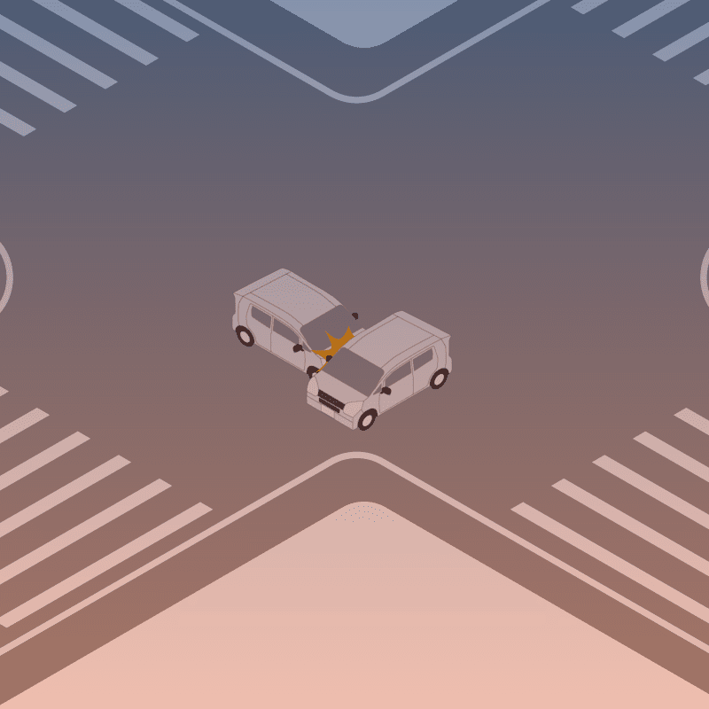 ・イラストに使用している各要素(車、背景、車、天候、信号、衝突地点など)は、代表的なイメージをイラスト化しており、色や形状等含め現実の事故の状況とは異なります。あくまで、事故のイメージとして参考までにご活用ください。