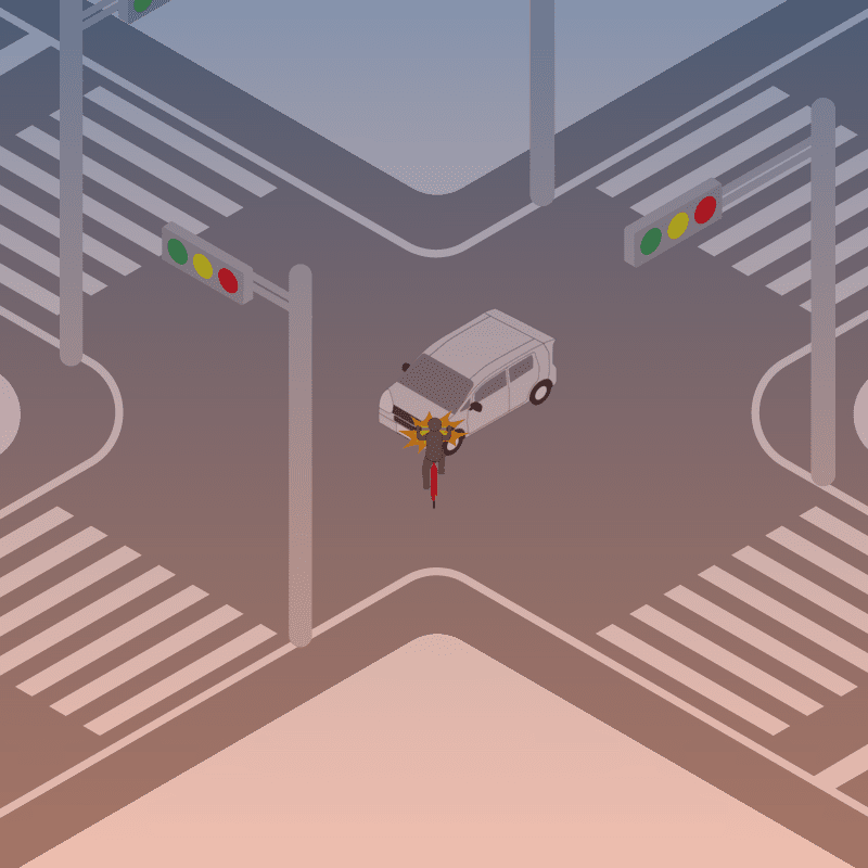 ・イラストに使用している各要素(車、背景、車、天候、信号、衝突地点など)は、代表的なイメージをイラスト化しており、色や形状等含め現実の事故の状況とは異なります。あくまで、事故のイメージとして参考までにご活用ください。