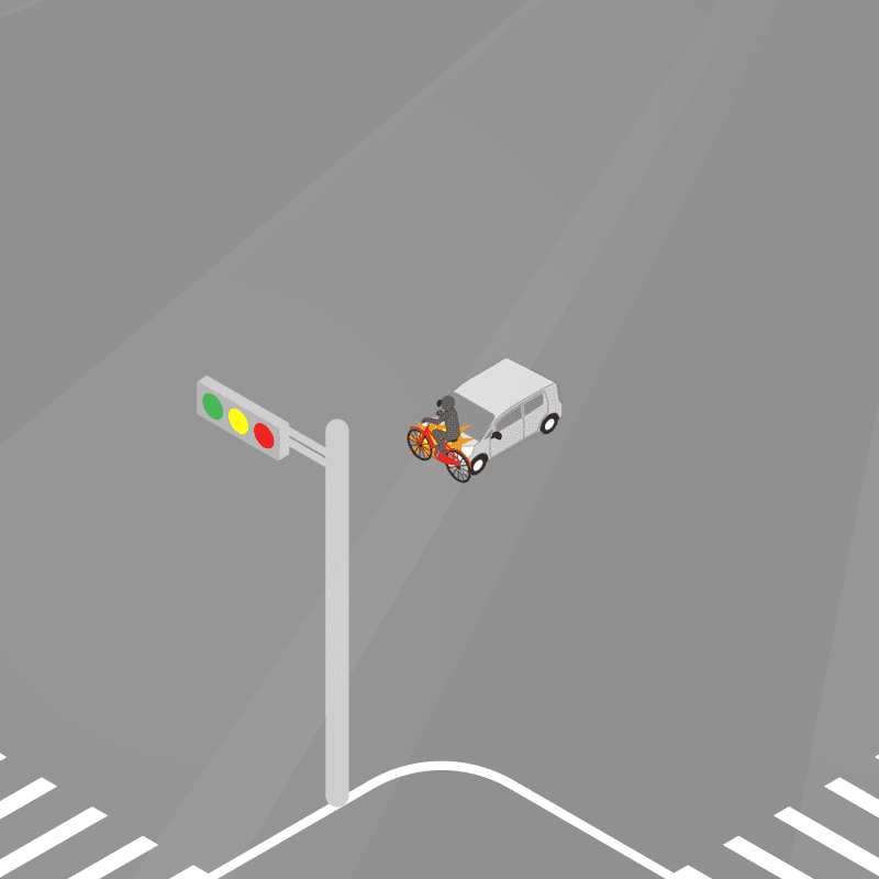 ・イラストに使用している各要素(車、背景、車、天候、信号、衝突地点など)は、代表的なイメージをイラスト化しており、色や形状等含め現実の事故の状況とは異なります。あくまで、事故のイメージとして参考までにご活用ください。