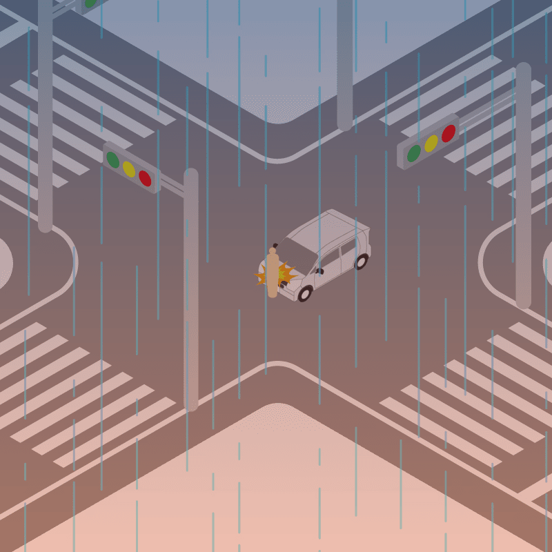・イラストに使用している各要素(車、背景、車、天候、信号、衝突地点など)は、代表的なイメージをイラスト化しており、色や形状等含め現実の事故の状況とは異なります。あくまで、事故のイメージとして参考までにご活用ください。