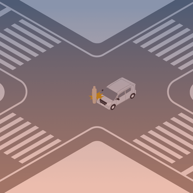 ・イラストに使用している各要素(車、背景、車、天候、信号、衝突地点など)は、代表的なイメージをイラスト化しており、色や形状等含め現実の事故の状況とは異なります。あくまで、事故のイメージとして参考までにご活用ください。