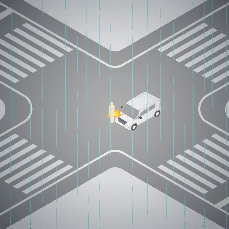 ・イラストに使用している各要素(車、背景、車、天候、信号、衝突地点など)は、代表的なイメージをイラスト化しており、色や形状等含め現実の事故の状況とは異なります。あくまで、事故のイメージとして参考までにご活用ください。