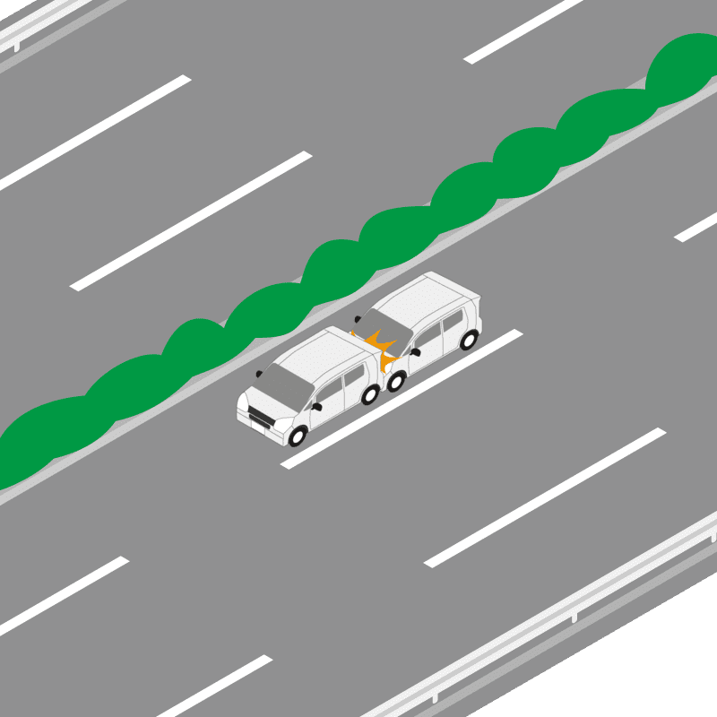 ・イラストに使用している各要素(車、背景、車、天候、信号、衝突地点など)は、代表的なイメージをイラスト化しており、色や形状等含め現実の事故の状況とは異なります。あくまで、事故のイメージとして参考までにご活用ください。