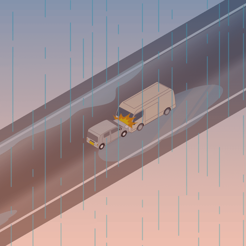 ・イラストに使用している各要素(車、背景、車、天候、信号、衝突地点など)は、代表的なイメージをイラスト化しており、色や形状等含め現実の事故の状況とは異なります。あくまで、事故のイメージとして参考までにご活用ください。