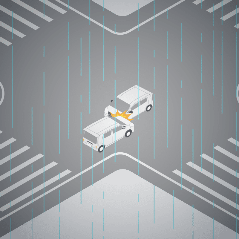 ・イラストに使用している各要素(車、背景、車、天候、信号、衝突地点など)は、代表的なイメージをイラスト化しており、色や形状等含め現実の事故の状況とは異なります。あくまで、事故のイメージとして参考までにご活用ください。