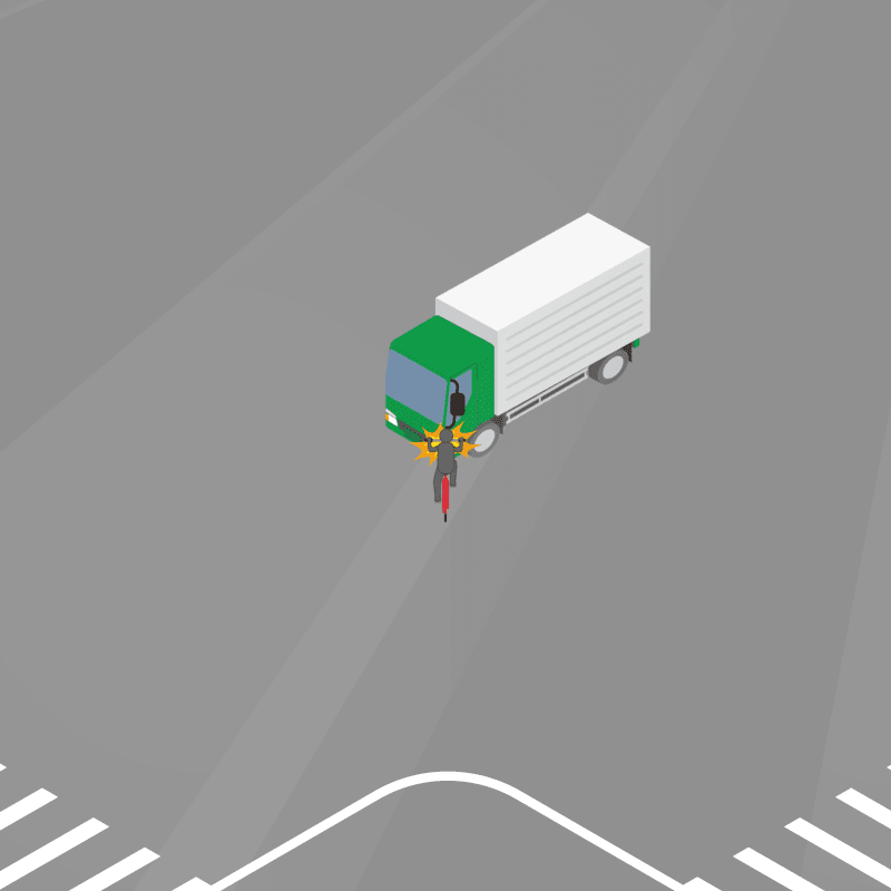 ・イラストに使用している各要素(車、背景、車、天候、信号、衝突地点など)は、代表的なイメージをイラスト化しており、色や形状等含め現実の事故の状況とは異なります。あくまで、事故のイメージとして参考までにご活用ください。