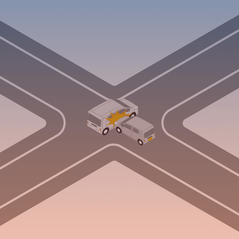 ・イラストに使用している各要素(車、背景、車、天候、信号、衝突地点など)は、代表的なイメージをイラスト化しており、色や形状等含め現実の事故の状況とは異なります。あくまで、事故のイメージとして参考までにご活用ください。