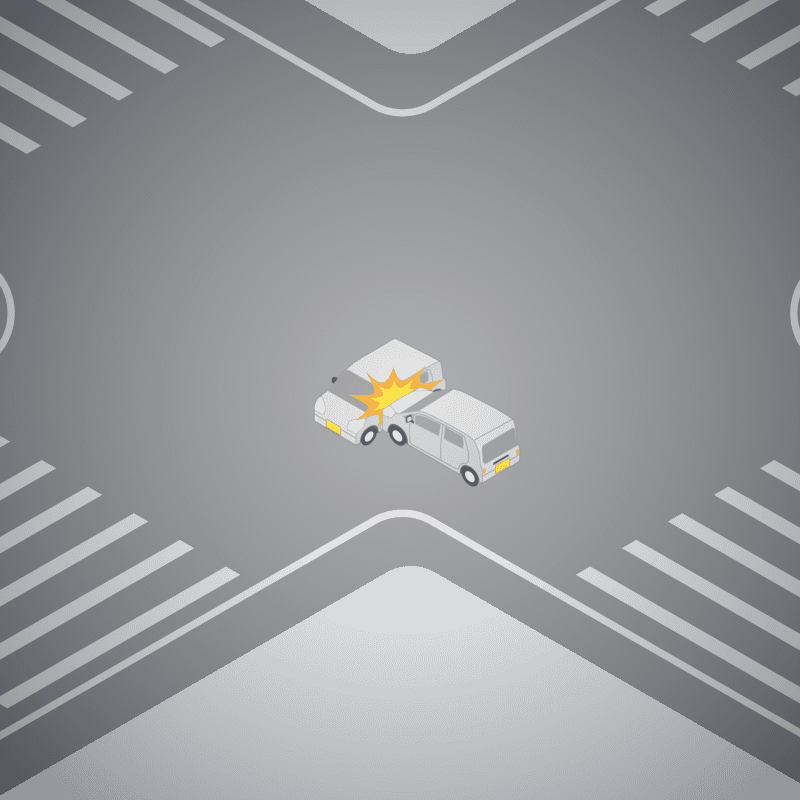 ・イラストに使用している各要素(車、背景、車、天候、信号、衝突地点など)は、代表的なイメージをイラスト化しており、色や形状等含め現実の事故の状況とは異なります。あくまで、事故のイメージとして参考までにご活用ください。