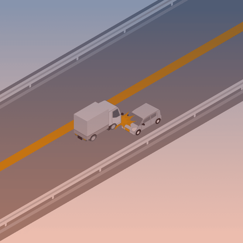 ・イラストに使用している各要素(車、背景、車、天候、信号、衝突地点など)は、代表的なイメージをイラスト化しており、色や形状等含め現実の事故の状況とは異なります。あくまで、事故のイメージとして参考までにご活用ください。