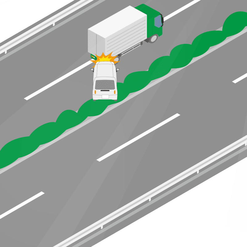 ・イラストに使用している各要素(車、背景、車、天候、信号、衝突地点など)は、代表的なイメージをイラスト化しており、色や形状等含め現実の事故の状況とは異なります。あくまで、事故のイメージとして参考までにご活用ください。