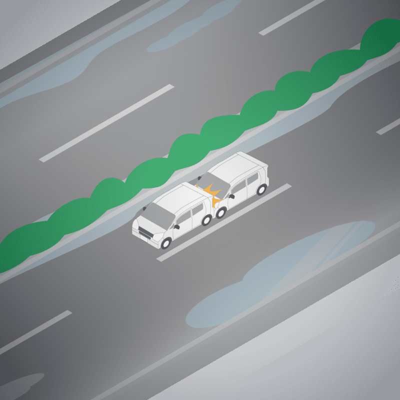 ・イラストに使用している各要素(車、背景、車、天候、信号、衝突地点など)は、代表的なイメージをイラスト化しており、色や形状等含め現実の事故の状況とは異なります。あくまで、事故のイメージとして参考までにご活用ください。