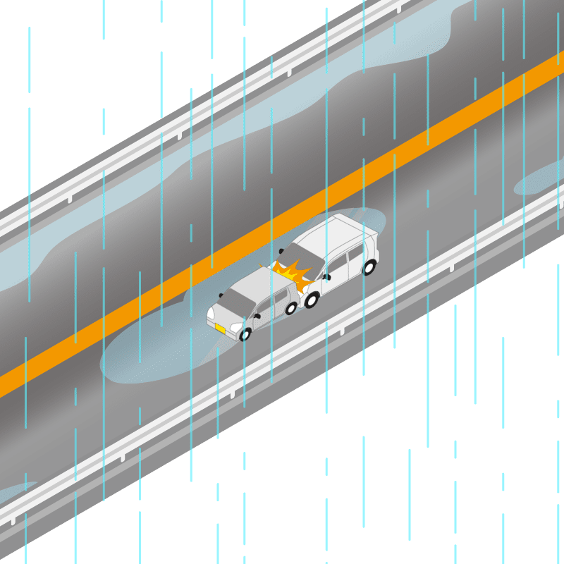 ・イラストに使用している各要素(車、背景、車、天候、信号、衝突地点など)は、代表的なイメージをイラスト化しており、色や形状等含め現実の事故の状況とは異なります。あくまで、事故のイメージとして参考までにご活用ください。