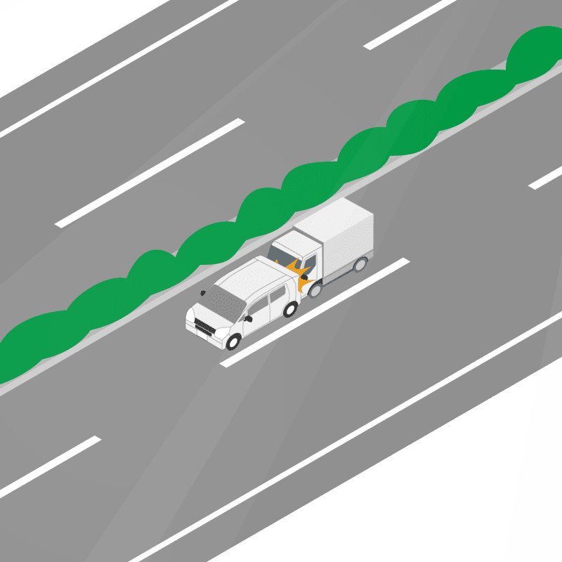 ・イラストに使用している各要素(車、背景、車、天候、信号、衝突地点など)は、代表的なイメージをイラスト化しており、色や形状等含め現実の事故の状況とは異なります。あくまで、事故のイメージとして参考までにご活用ください。