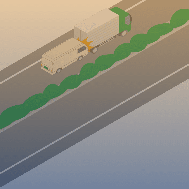 ・イラストに使用している各要素(車、背景、車、天候、信号、衝突地点など)は、代表的なイメージをイラスト化しており、色や形状等含め現実の事故の状況とは異なります。あくまで、事故のイメージとして参考までにご活用ください。