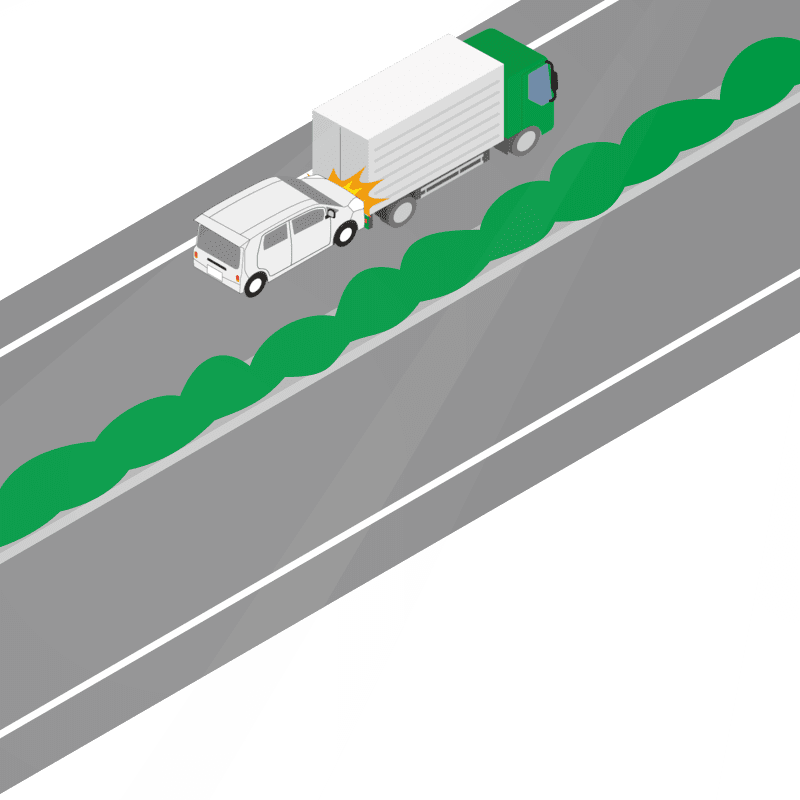 ・イラストに使用している各要素(車、背景、車、天候、信号、衝突地点など)は、代表的なイメージをイラスト化しており、色や形状等含め現実の事故の状況とは異なります。あくまで、事故のイメージとして参考までにご活用ください。