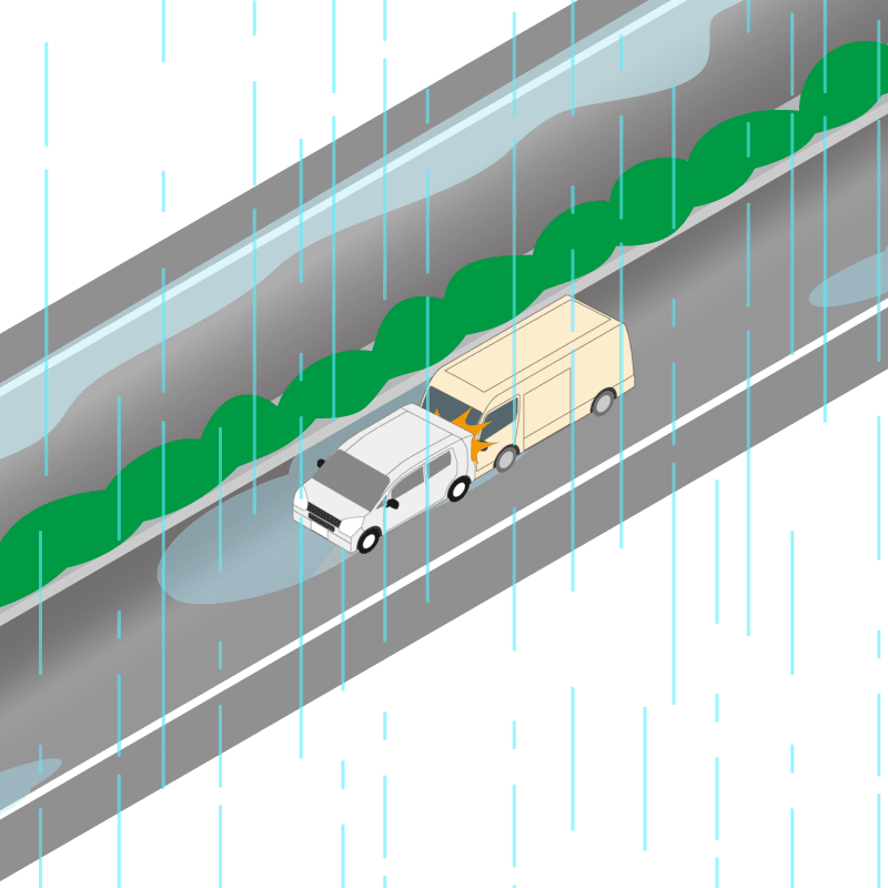 ・イラストに使用している各要素(車、背景、車、天候、信号、衝突地点など)は、代表的なイメージをイラスト化しており、色や形状等含め現実の事故の状況とは異なります。あくまで、事故のイメージとして参考までにご活用ください。