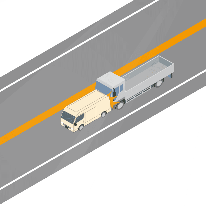 ・イラストに使用している各要素(車、背景、車、天候、信号、衝突地点など)は、代表的なイメージをイラスト化しており、色や形状等含め現実の事故の状況とは異なります。あくまで、事故のイメージとして参考までにご活用ください。