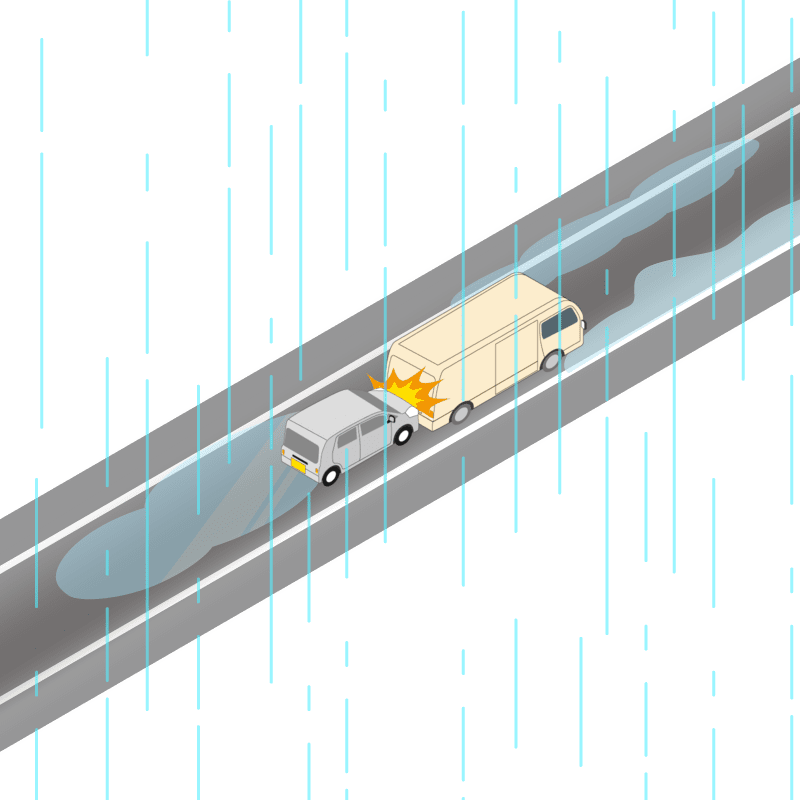・イラストに使用している各要素(車、背景、車、天候、信号、衝突地点など)は、代表的なイメージをイラスト化しており、色や形状等含め現実の事故の状況とは異なります。あくまで、事故のイメージとして参考までにご活用ください。