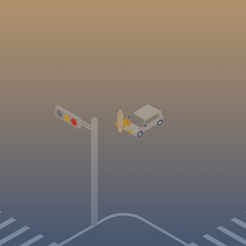 ・イラストに使用している各要素(車、背景、車、天候、信号、衝突地点など)は、代表的なイメージをイラスト化しており、色や形状等含め現実の事故の状況とは異なります。あくまで、事故のイメージとして参考までにご活用ください。