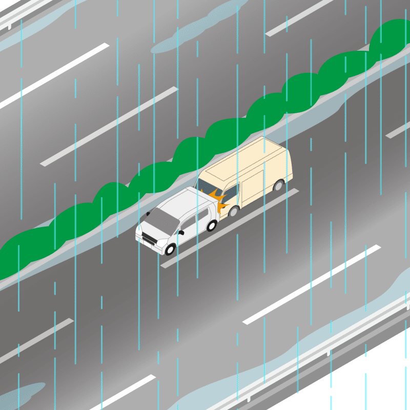 ・イラストに使用している各要素(車、背景、車、天候、信号、衝突地点など)は、代表的なイメージをイラスト化しており、色や形状等含め現実の事故の状況とは異なります。あくまで、事故のイメージとして参考までにご活用ください。