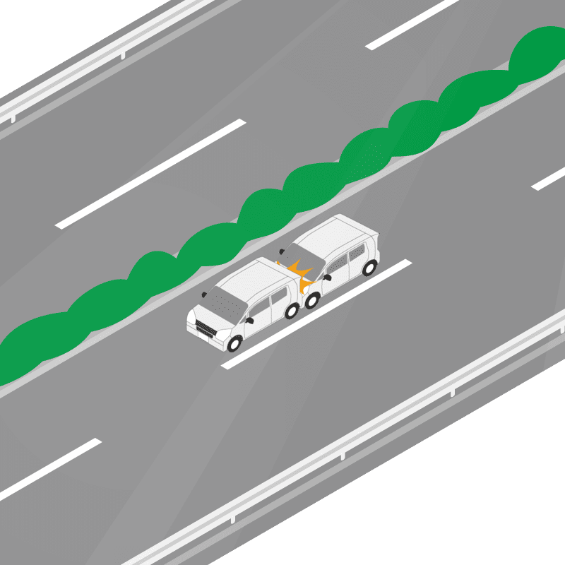 ・イラストに使用している各要素(車、背景、車、天候、信号、衝突地点など)は、代表的なイメージをイラスト化しており、色や形状等含め現実の事故の状況とは異なります。あくまで、事故のイメージとして参考までにご活用ください。