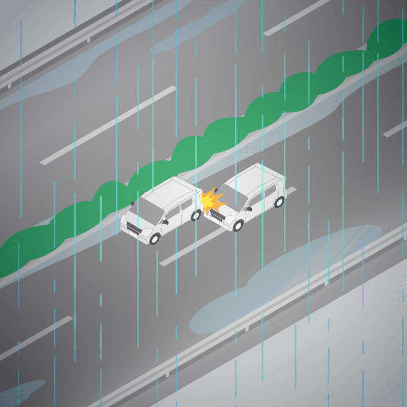 ・イラストに使用している各要素(車、背景、車、天候、信号、衝突地点など)は、代表的なイメージをイラスト化しており、色や形状等含め現実の事故の状況とは異なります。あくまで、事故のイメージとして参考までにご活用ください。