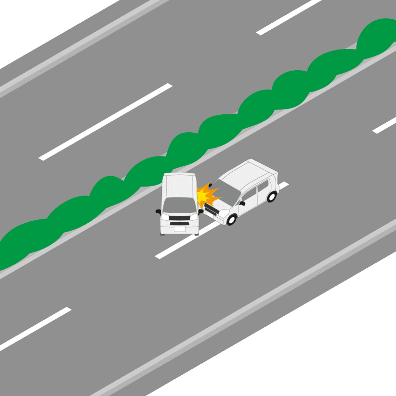 ・イラストに使用している各要素(車、背景、車、天候、信号、衝突地点など)は、代表的なイメージをイラスト化しており、色や形状等含め現実の事故の状況とは異なります。あくまで、事故のイメージとして参考までにご活用ください。