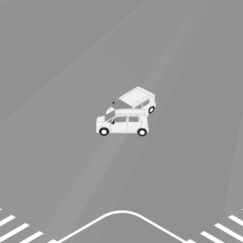 ・イラストに使用している各要素(車、背景、車、天候、信号、衝突地点など)は、代表的なイメージをイラスト化しており、色や形状等含め現実の事故の状況とは異なります。あくまで、事故のイメージとして参考までにご活用ください。