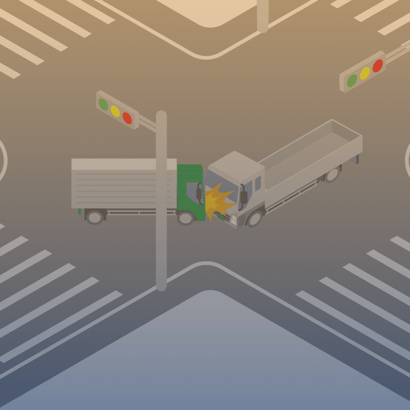 ・イラストに使用している各要素(車、背景、車、天候、信号、衝突地点など)は、代表的なイメージをイラスト化しており、色や形状等含め現実の事故の状況とは異なります。あくまで、事故のイメージとして参考までにご活用ください。