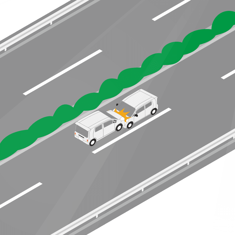 ・イラストに使用している各要素(車、背景、車、天候、信号、衝突地点など)は、代表的なイメージをイラスト化しており、色や形状等含め現実の事故の状況とは異なります。あくまで、事故のイメージとして参考までにご活用ください。