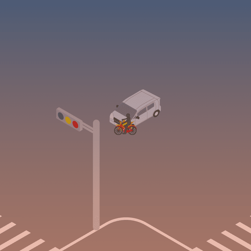 ・イラストに使用している各要素(車、背景、車、天候、信号、衝突地点など)は、代表的なイメージをイラスト化しており、色や形状等含め現実の事故の状況とは異なります。あくまで、事故のイメージとして参考までにご活用ください。