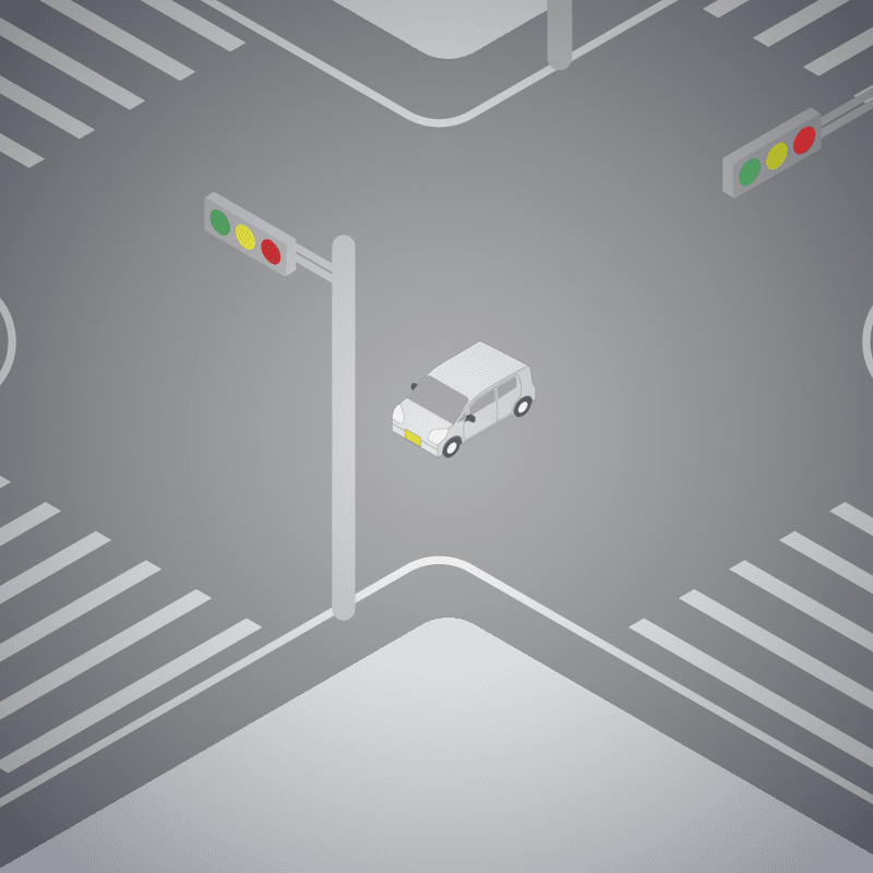 ・イラストに使用している各要素(車、背景、車、天候、信号、衝突地点など)は、代表的なイメージをイラスト化しており、色や形状等含め現実の事故の状況とは異なります。あくまで、事故のイメージとして参考までにご活用ください。