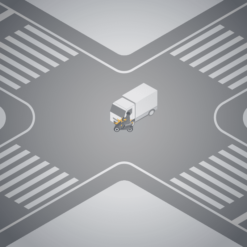 ・イラストに使用している各要素(車、背景、車、天候、信号、衝突地点など)は、代表的なイメージをイラスト化しており、色や形状等含め現実の事故の状況とは異なります。あくまで、事故のイメージとして参考までにご活用ください。