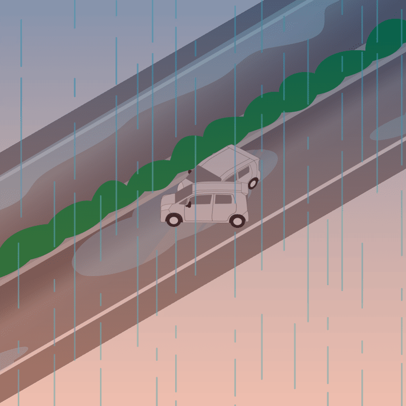 ・イラストに使用している各要素(車、背景、車、天候、信号、衝突地点など)は、代表的なイメージをイラスト化しており、色や形状等含め現実の事故の状況とは異なります。あくまで、事故のイメージとして参考までにご活用ください。