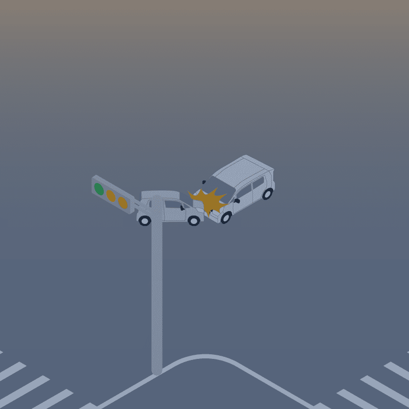 ・イラストに使用している各要素(車、背景、車、天候、信号、衝突地点など)は、代表的なイメージをイラスト化しており、色や形状等含め現実の事故の状況とは異なります。あくまで、事故のイメージとして参考までにご活用ください。