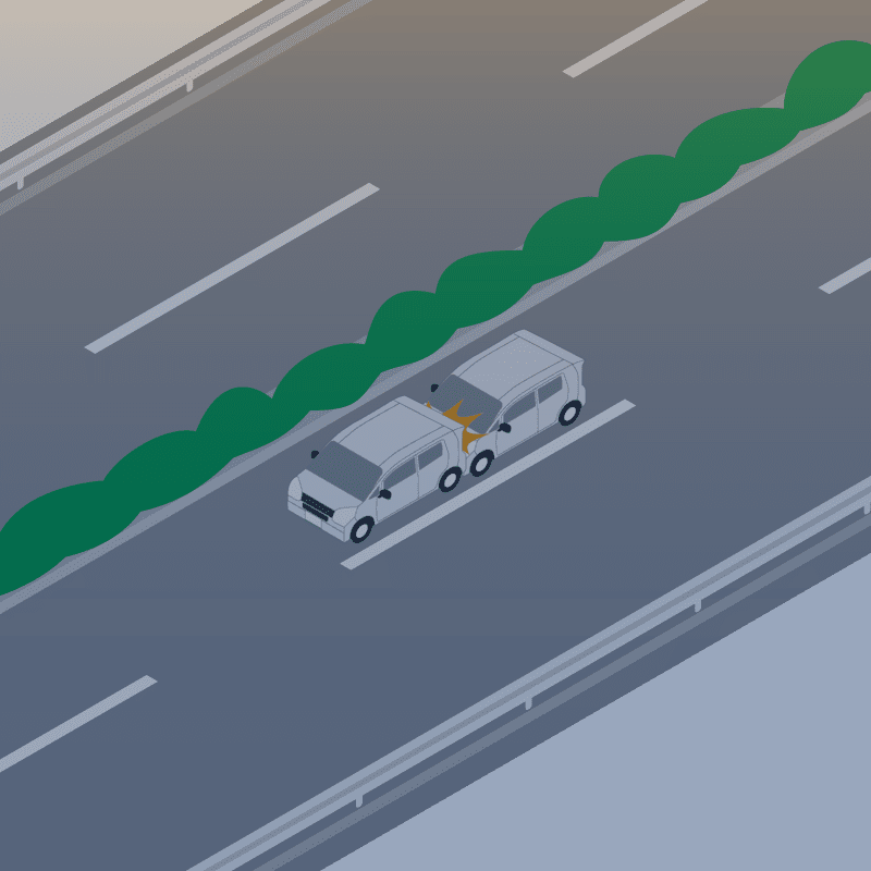 ・イラストに使用している各要素(車、背景、車、天候、信号、衝突地点など)は、代表的なイメージをイラスト化しており、色や形状等含め現実の事故の状況とは異なります。あくまで、事故のイメージとして参考までにご活用ください。